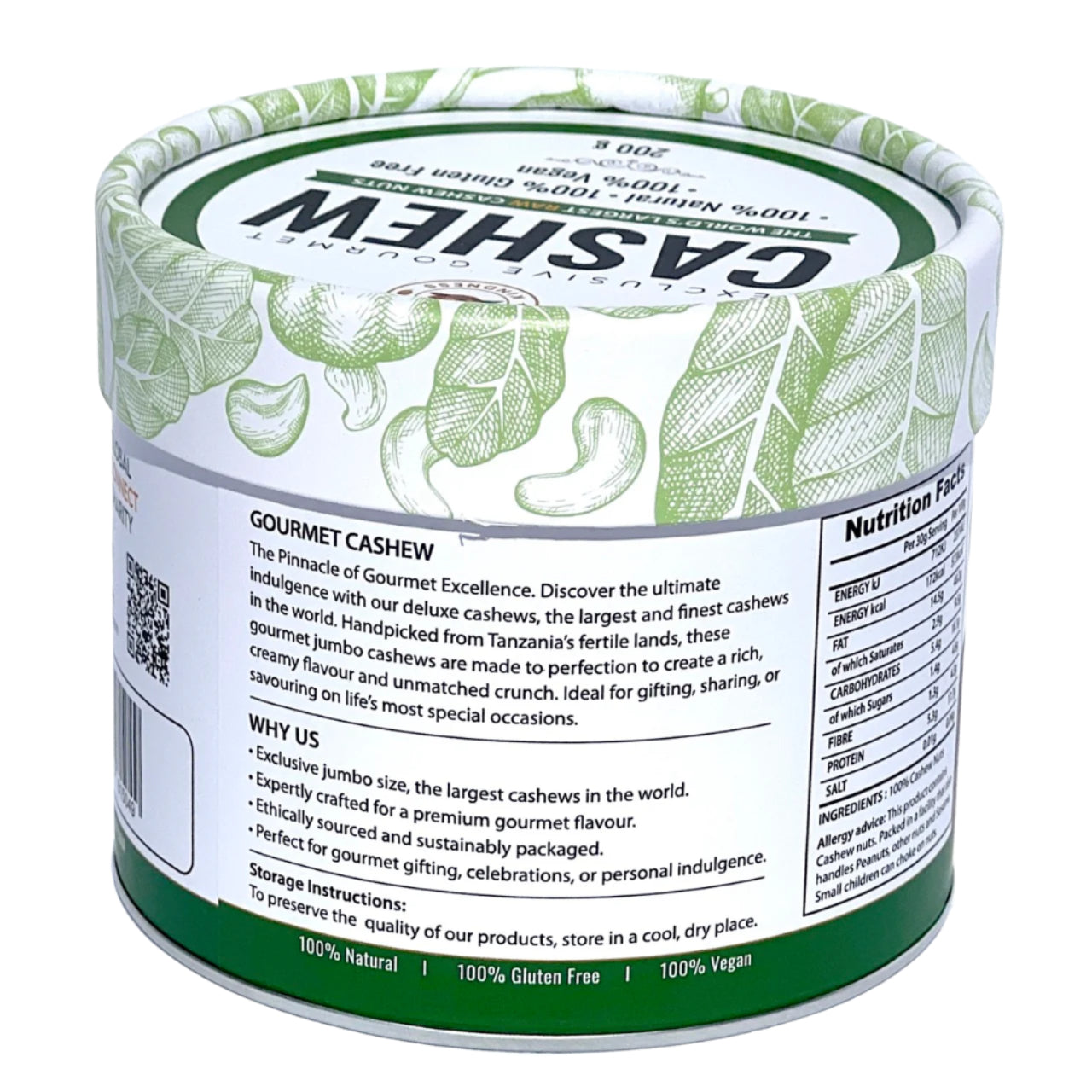 The Exclusive Tanzania Taster includes two 200g gift tubes of our jumbo-grade natural and roasted cashews - the true King of Cashews - alongside a packet of our fragrant luxury Tanzanian vanilla pods. Each ingredient is sourced from ethical smallholder farmers and processed locally at origin to preserve its authentic flavour and freshness.